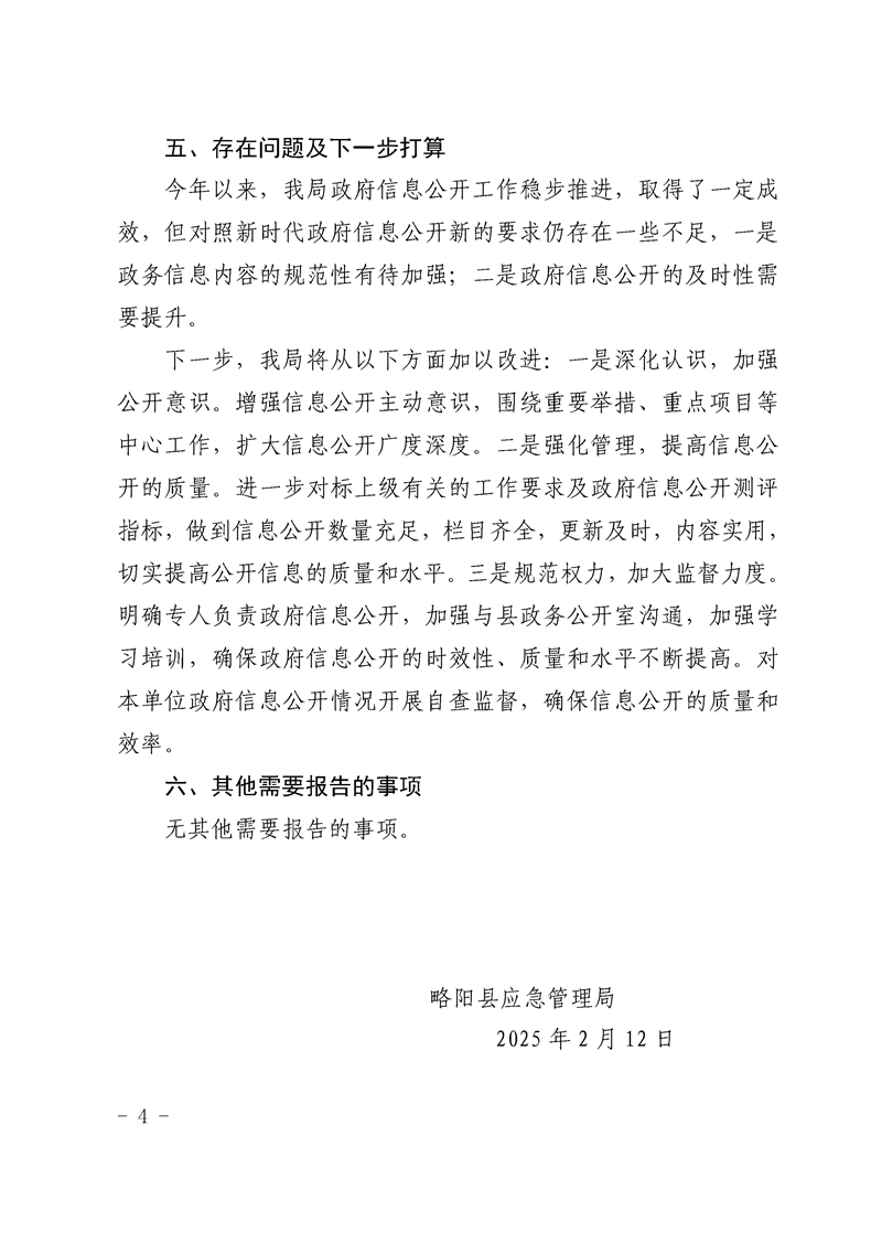 略陽(yáng)縣應(yīng)急管理局2024年政府信息公開(kāi)工作年度報(bào)告