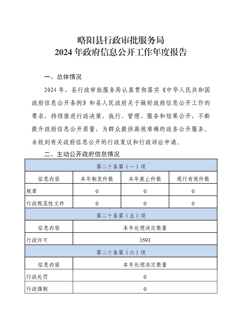 略陽縣行政審批服務局2024年政府信息公開工作年度報告 |