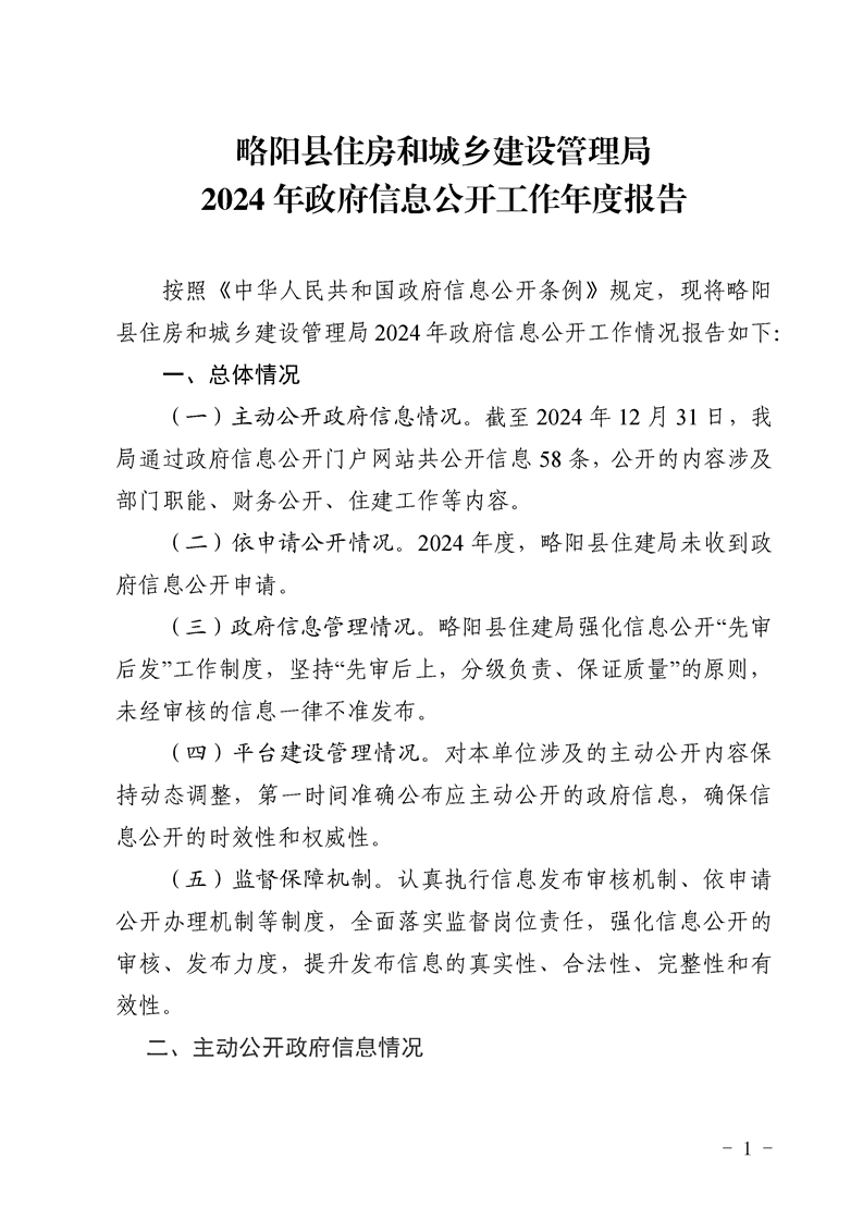 略陽縣住房和城鄉(xiāng)建設(shè)管理局2024年政府信息公開工作年度報告
