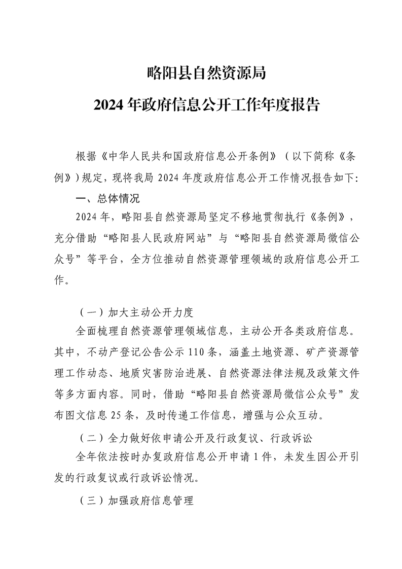略陽縣自然資源局2024年度政府信息公開工作年度報告