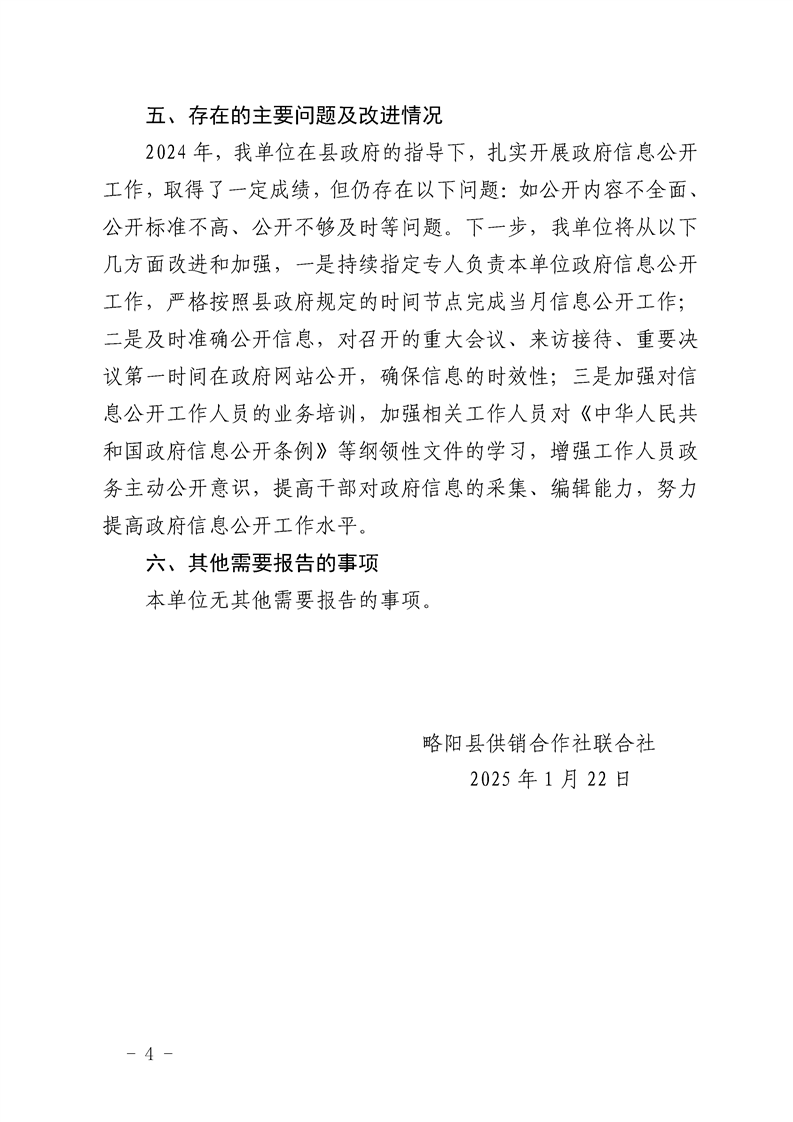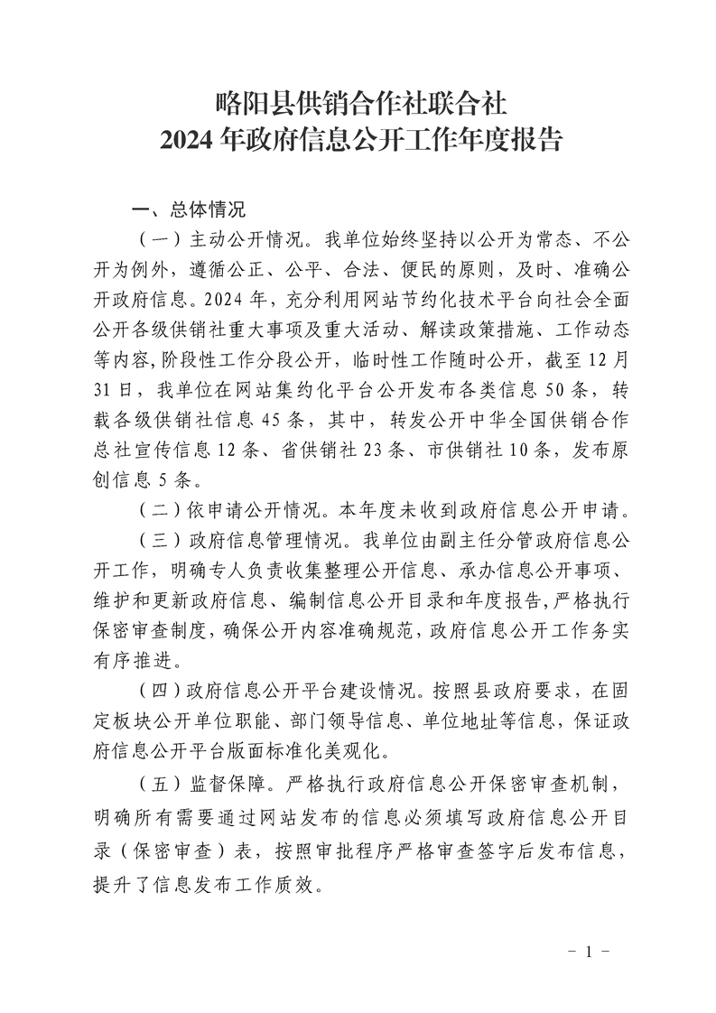 略陽縣供銷合作社聯合社2024年政府信息公開工作年度報告