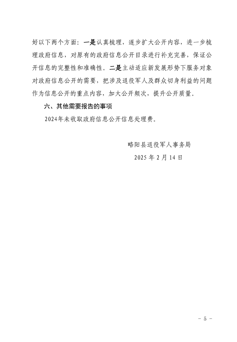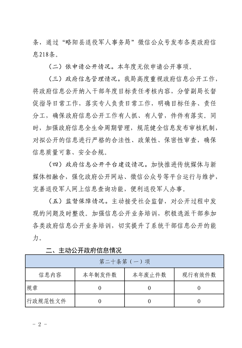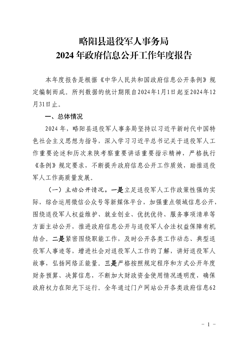 略陽縣退役軍人事務局2024年度政府信息公開年度報告