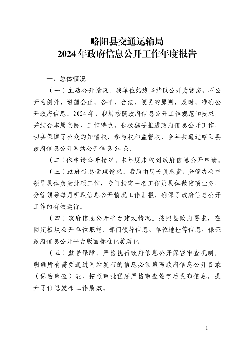 略陽縣交通運輸局2024年政府信息公開工作年度報告 |
