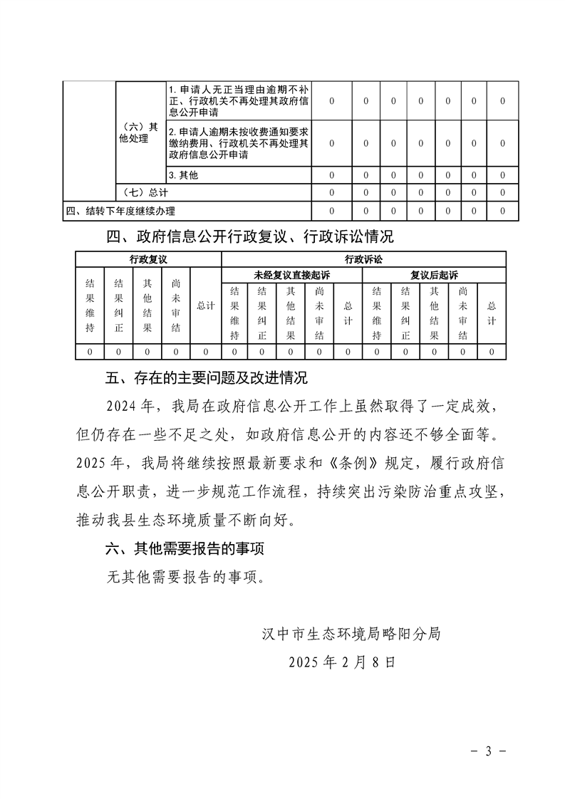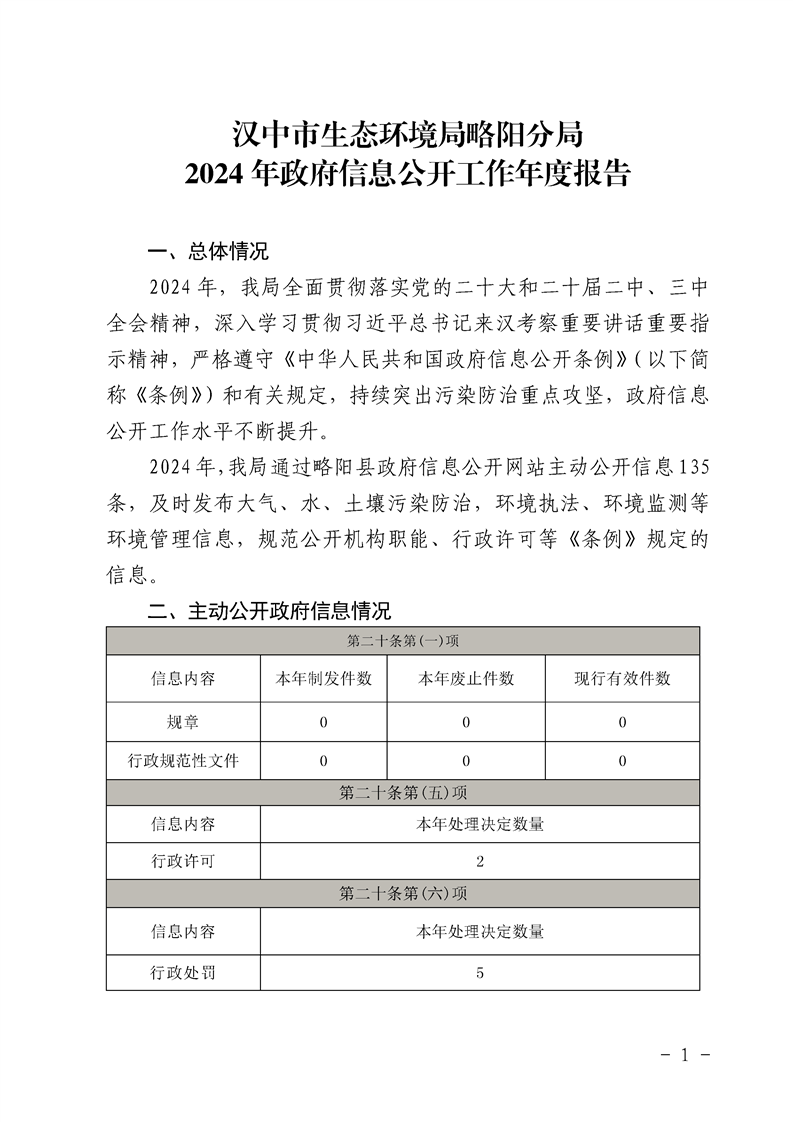 漢中市生態環境局略陽分局2024年政府信息公開工作年度報告