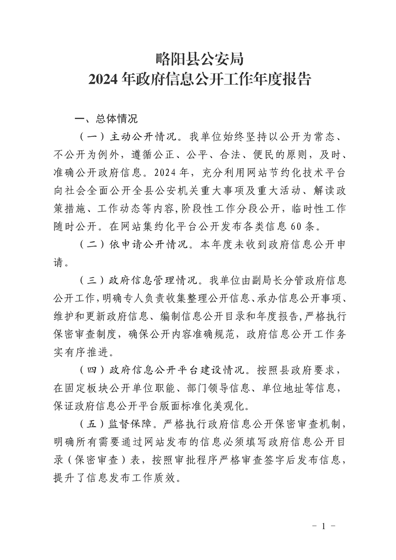 略陽縣公安局2024年政府信息公開工作年度報告 |