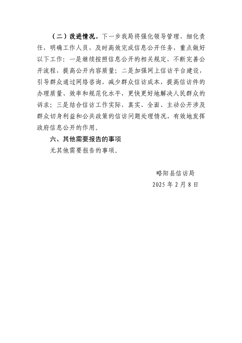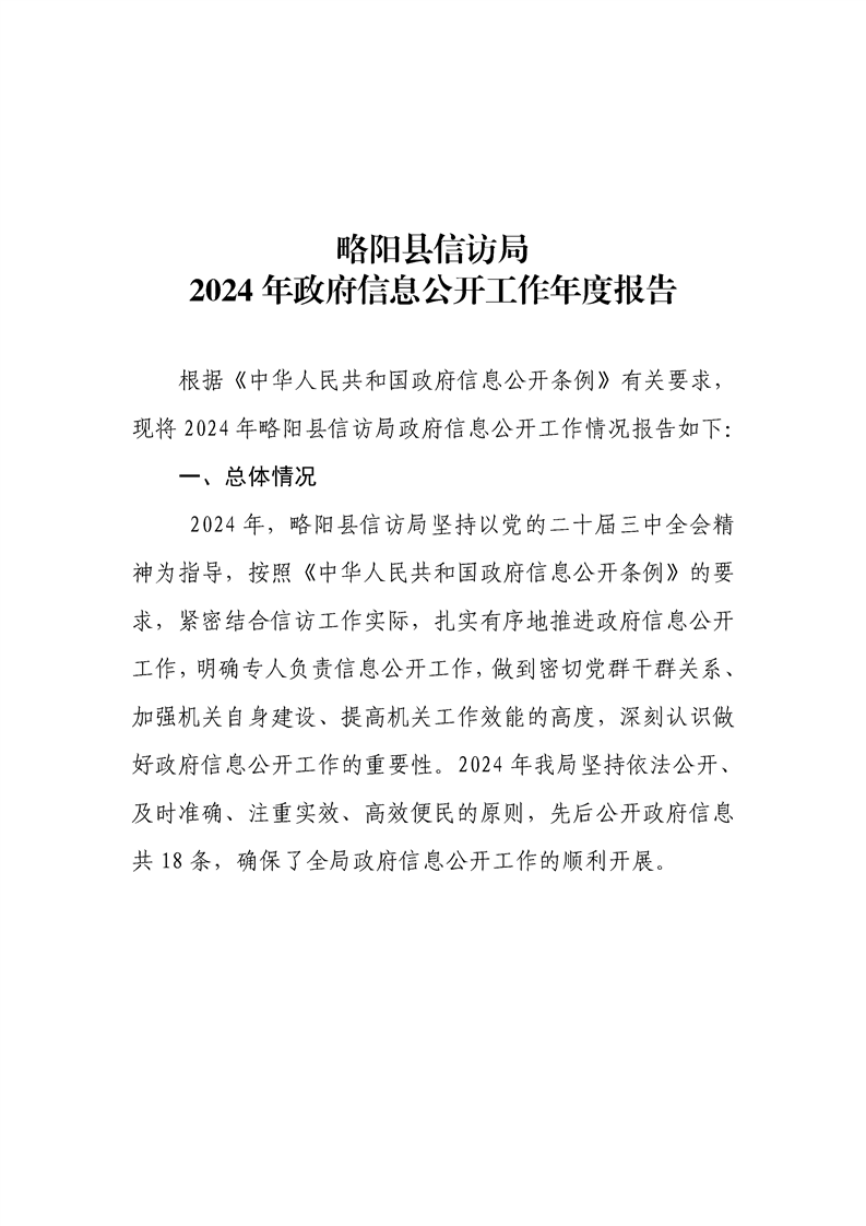 略陽縣信訪局2024年政府信息公開工作年度報告