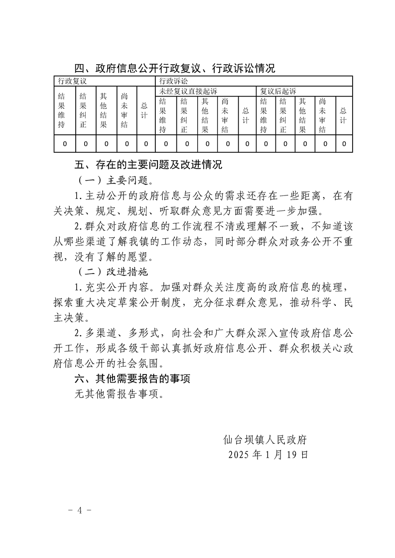 仙臺壩鎮人民政府2024年政府信息公開工作年度報告