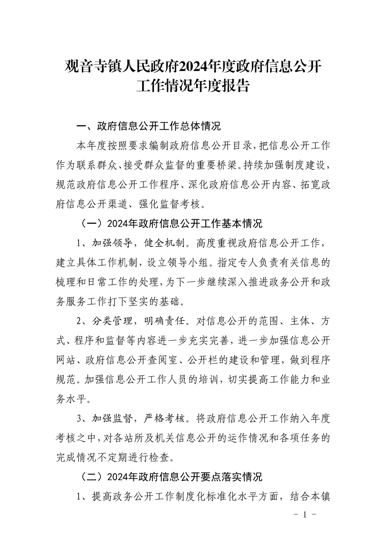 觀音寺鎮人民政府2024年度政府信息公開工作情況年度報告