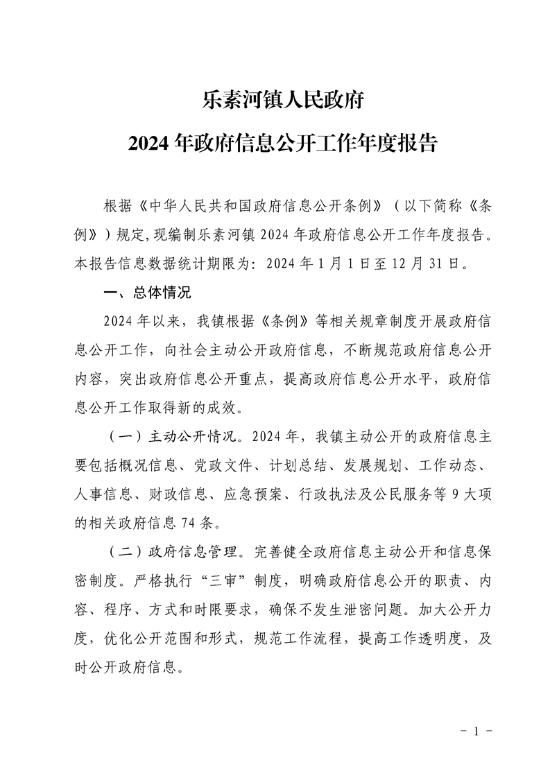 樂素河鎮人民政府2024年政府信息公開工作年度報告