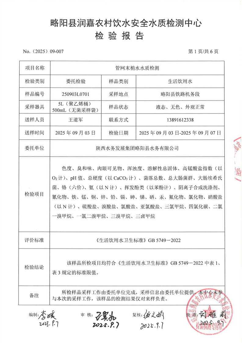 水質檢測報告9月-6城區管網末梢-鐵路機務段