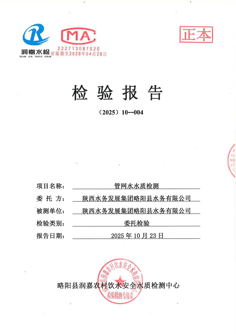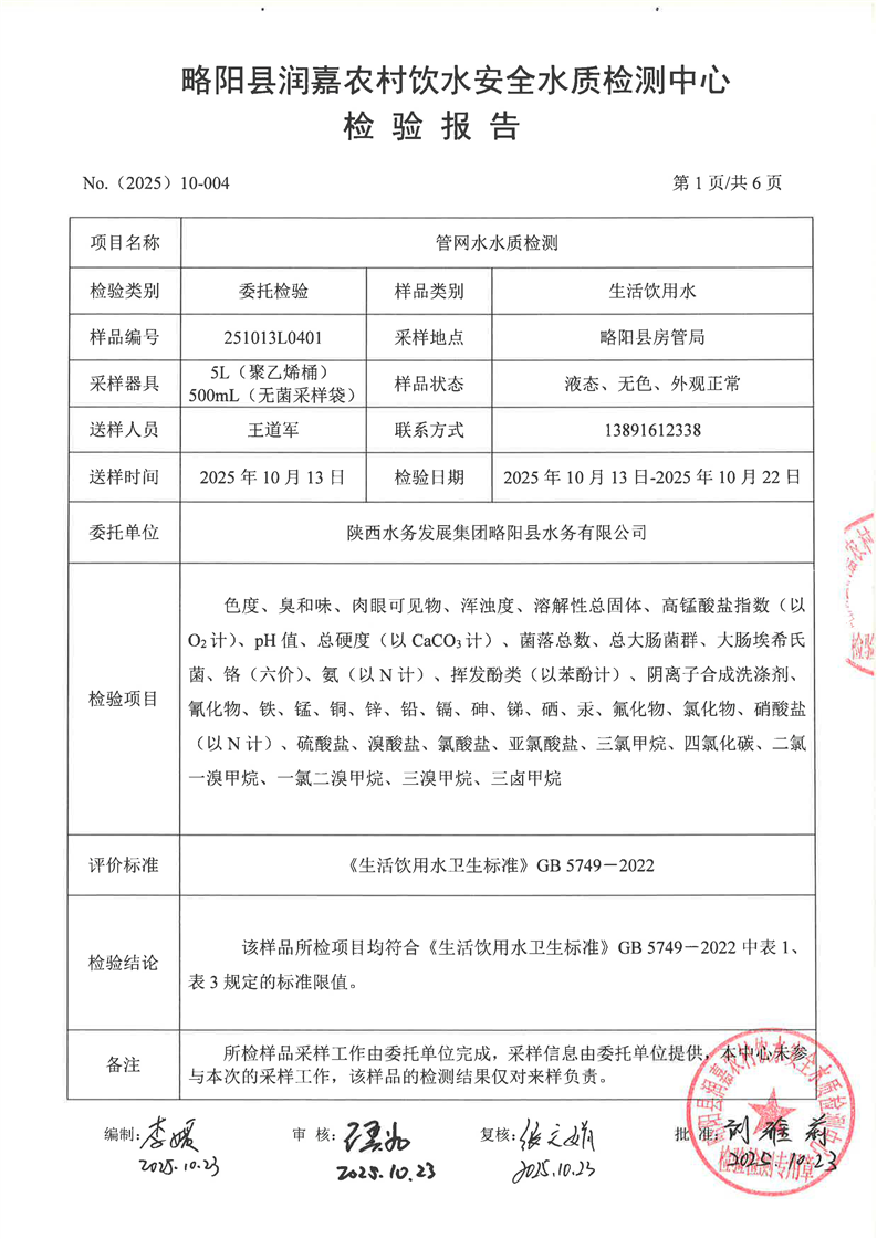 水質(zhì)檢測報告10月-4城區(qū)管網(wǎng)-司法局