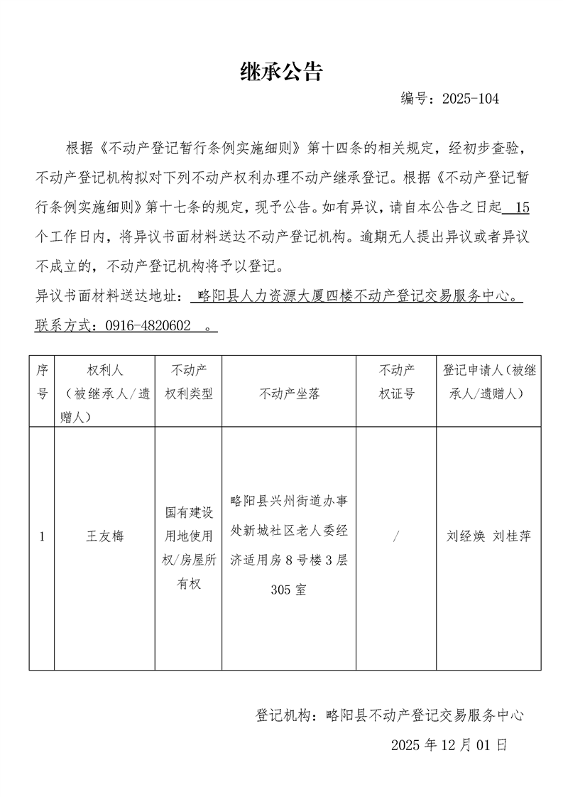繼承公告編號:2025-104