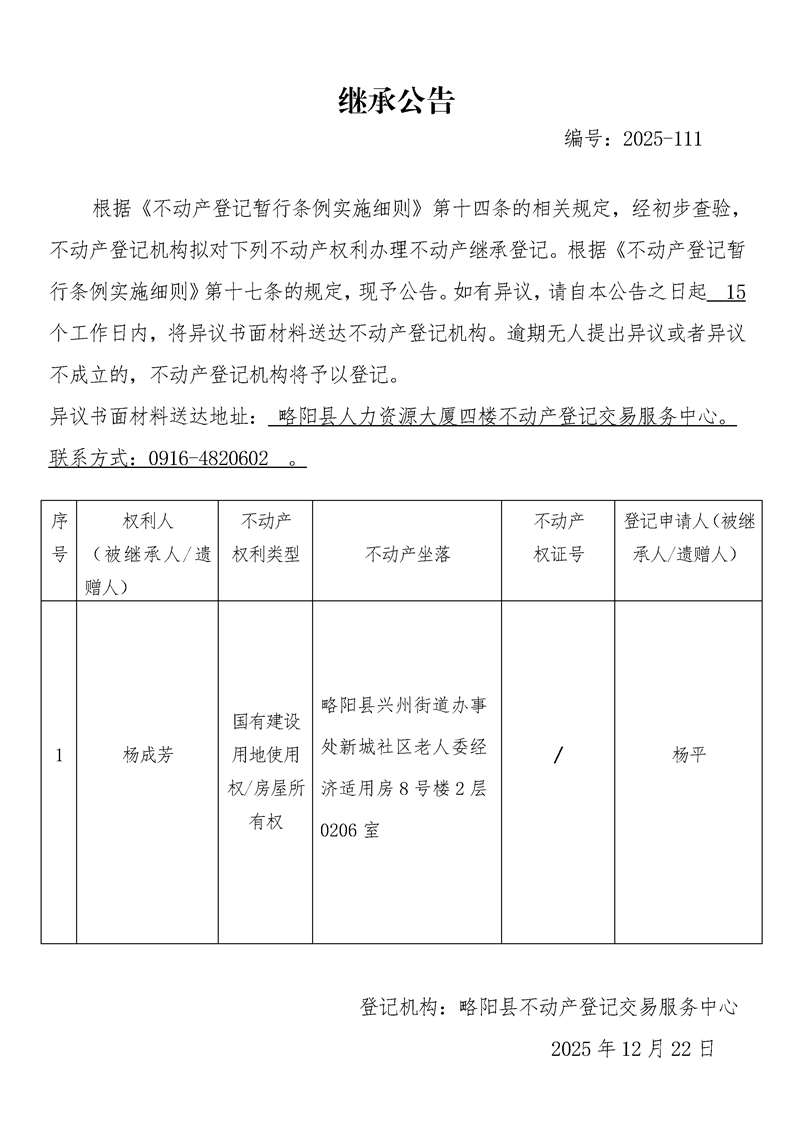 繼承公告編號:2025-111