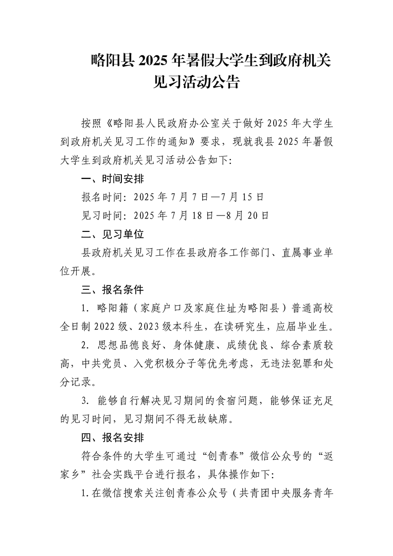 略陽縣2025年暑假大學生到政府機關見習活動公告 |