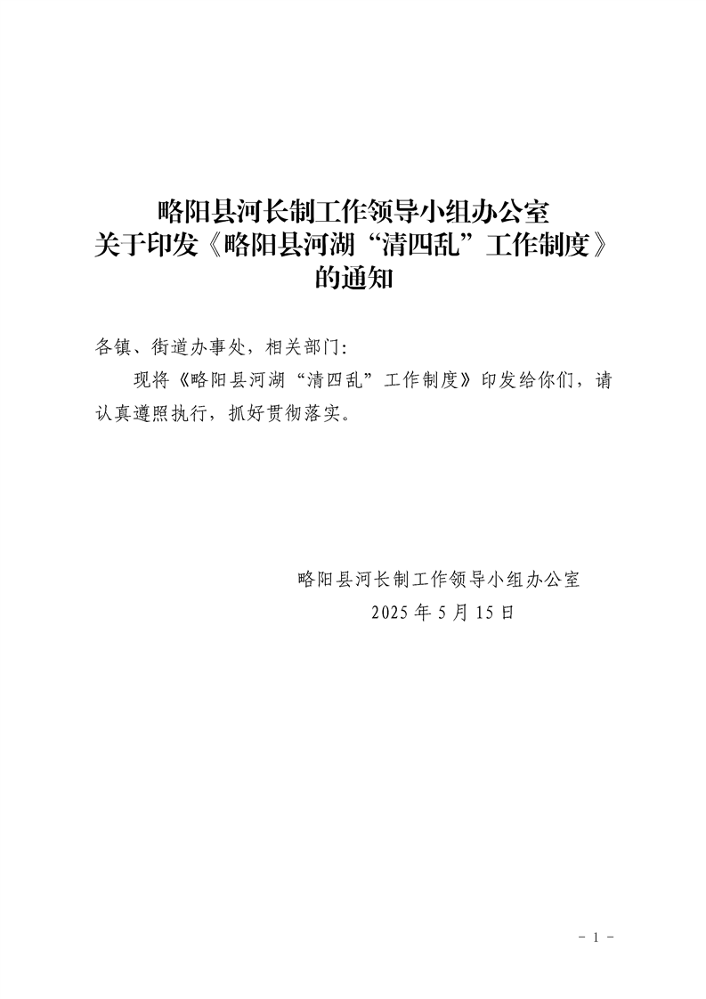 略陽縣河長制工作領導小組辦公室關于印發《略陽縣河湖“清四亂”工作制度》的通知