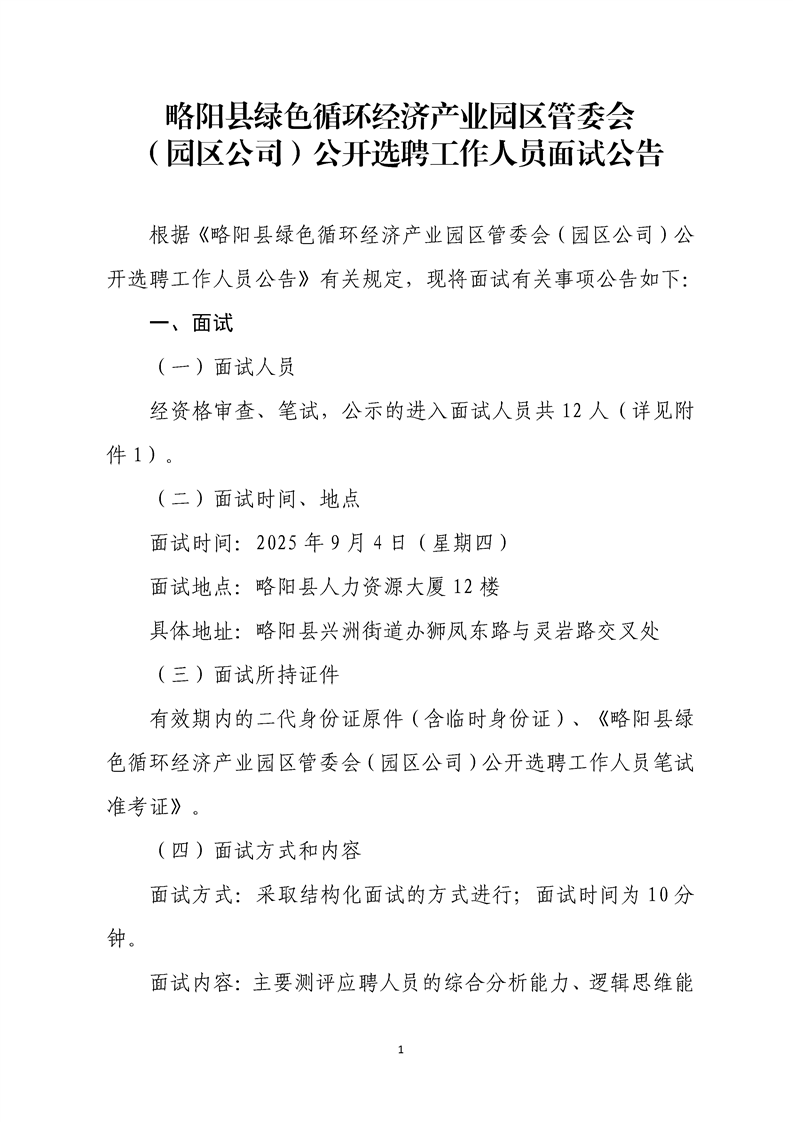 略陽縣綠色循環(huán)經(jīng)濟產(chǎn)業(yè)園區(qū)管委會(園區(qū)公司)公開選聘工作人員面試公告 |