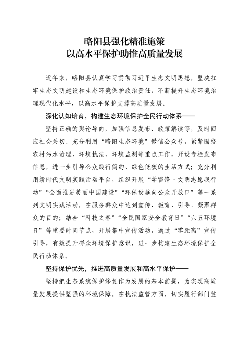 略陽縣強化精準施策,以高水平保護助推高質量發展