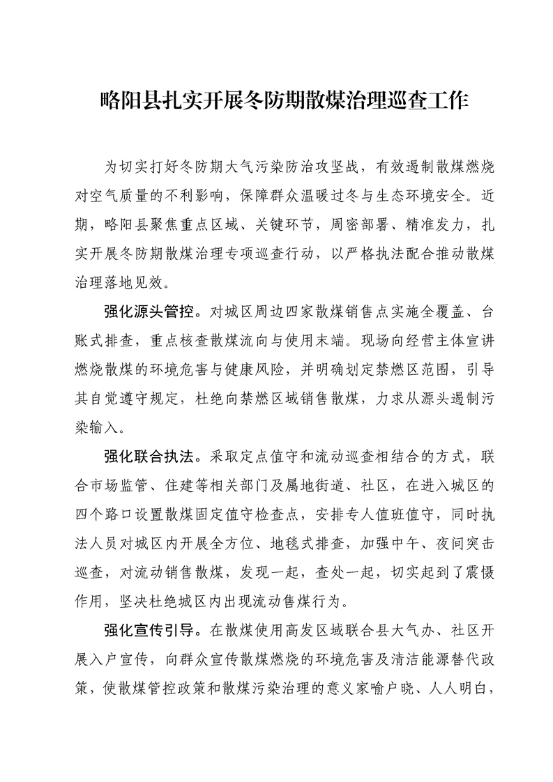 略陽縣扎實開展冬防期散煤治理巡查工作