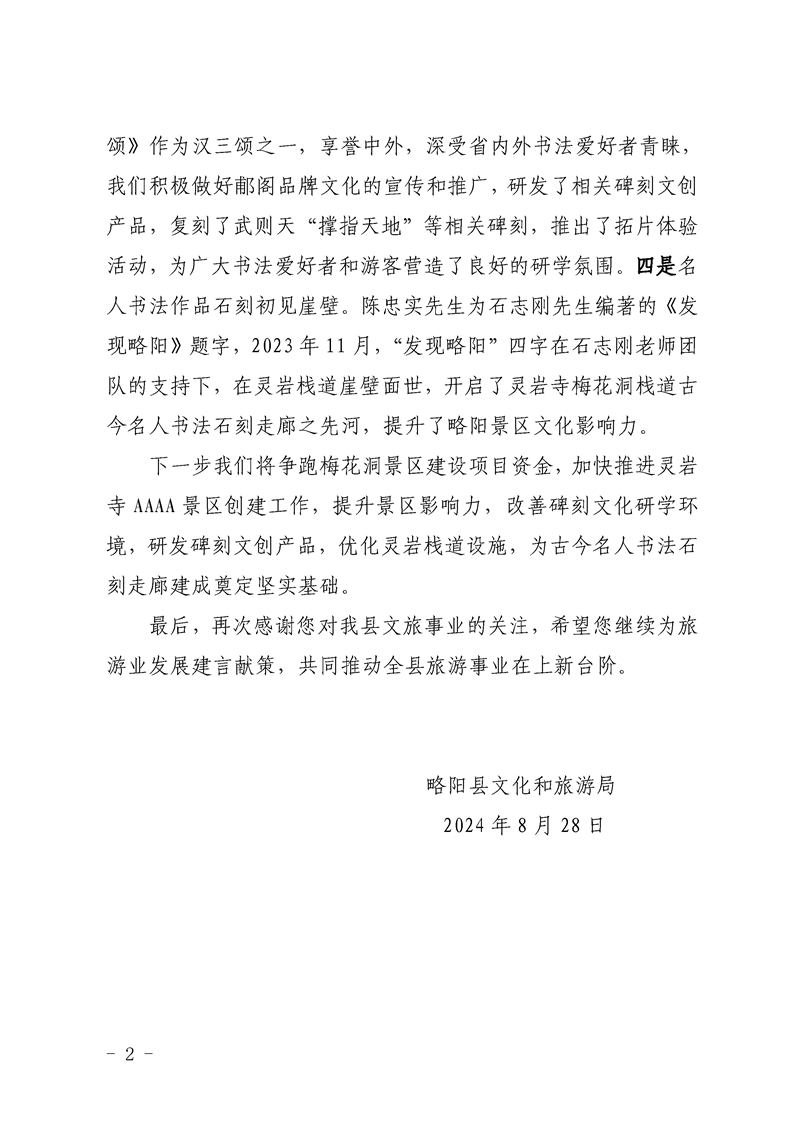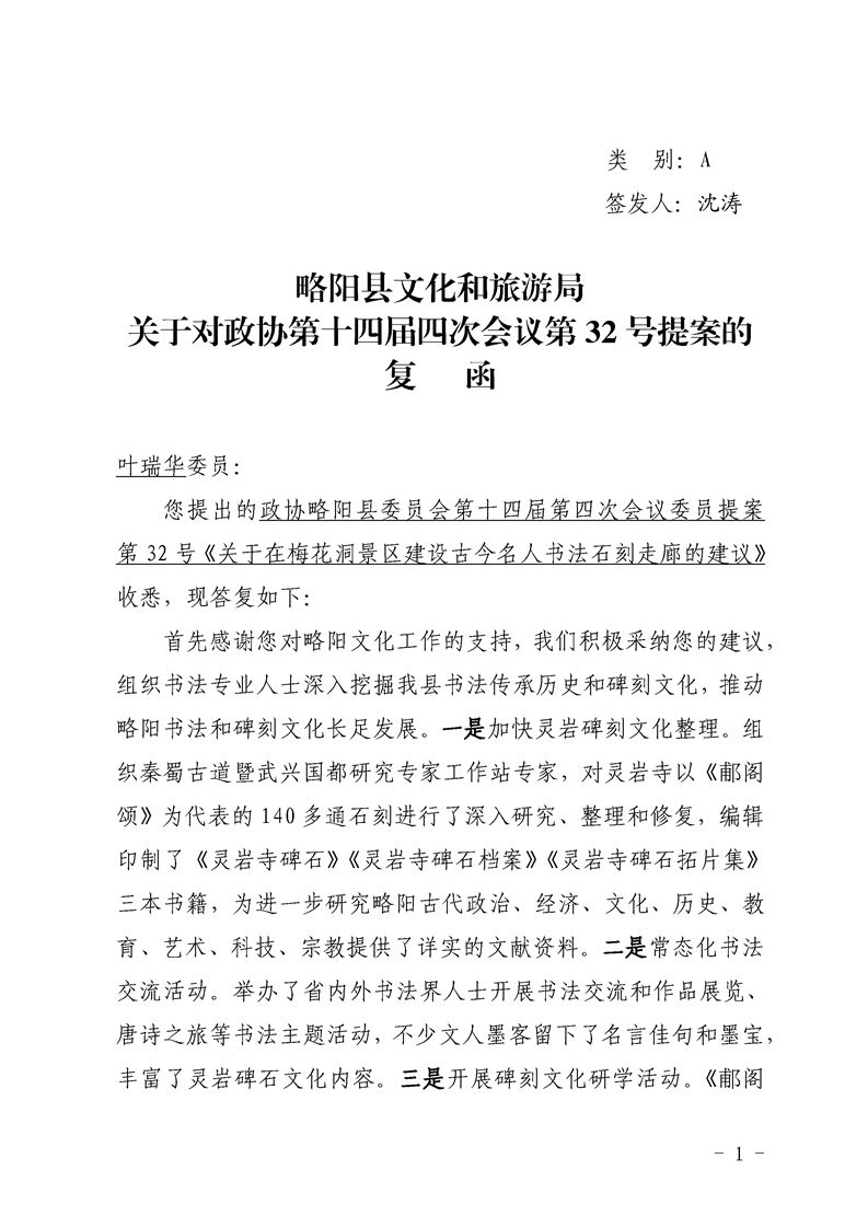 略陽縣文化和旅游局關于對政協第十四屆四次會議第32號提案的復函