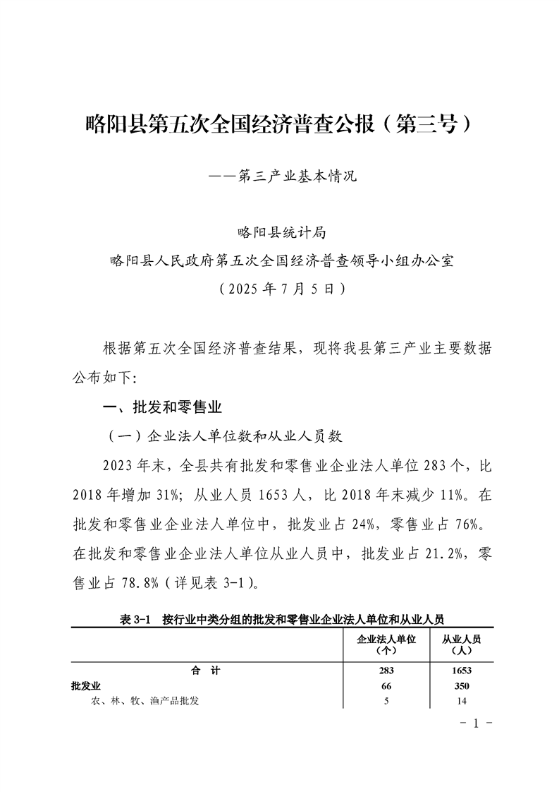 略陽縣第五次全國經濟普查公報(第三號)