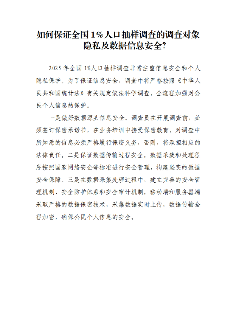 如何保證全國1%人口抽樣調查的調查對象隱私及數(shù)據(jù)信息安全?