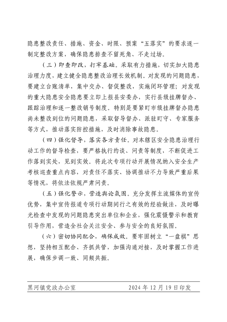 黑河鎮(zhèn)人民政府關(guān)于印發(fā)《全鎮(zhèn)秋冬季安全生產(chǎn)隱患大排查大整治專項(xiàng)行動(dòng)方案》的通知