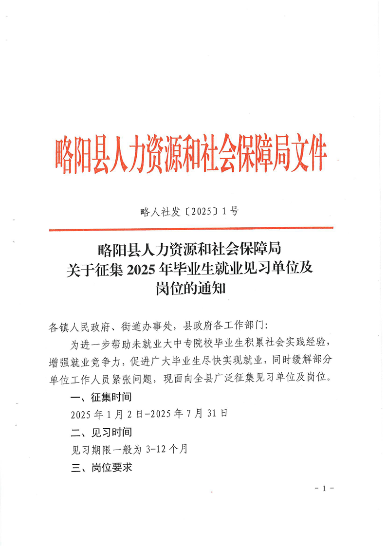 略陽縣人力資源和社會保障局關于征集2025年畢業生就業見習單位及崗位的通知