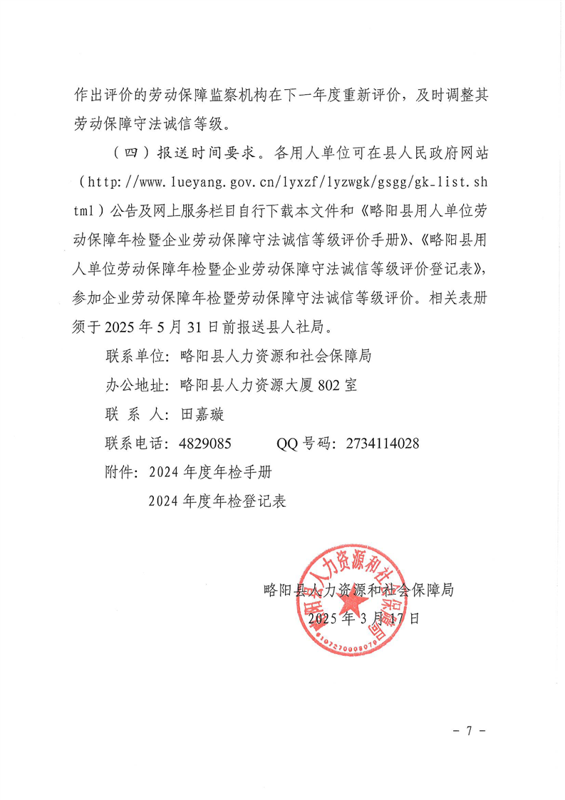 略陽縣人力資源和社會保障局關于開展2024年度用人單位勞動保障年檢暨2025年企業勞動保障守法誠信等級評價工作的通知