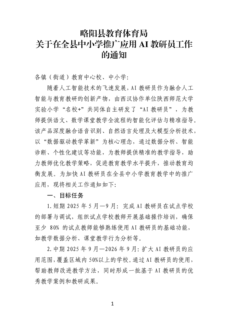略陽縣教育體育局關于在全縣推廣應用中小學AI教研員工作的通知