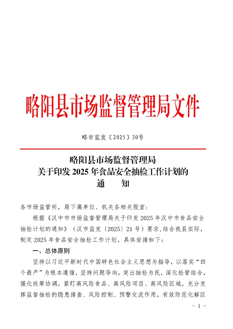 略陽(yáng)縣市場(chǎng)監(jiān)督管理局關(guān)于印發(fā)2025年食品安全抽檢工作計(jì)劃的通知