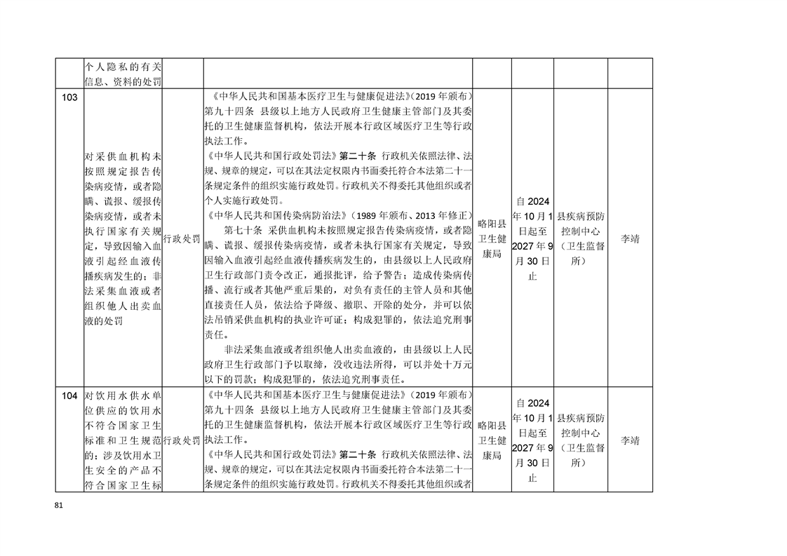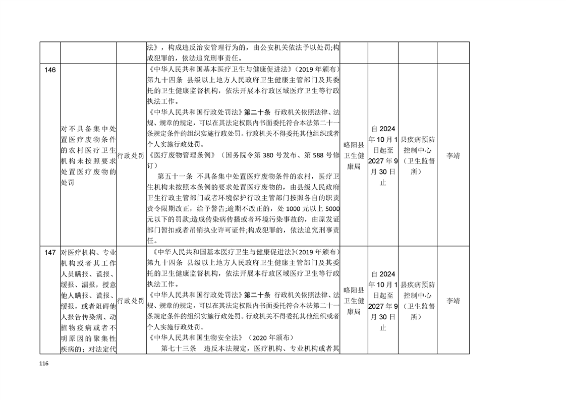 略陽縣衛生健康局行政執法事項清單