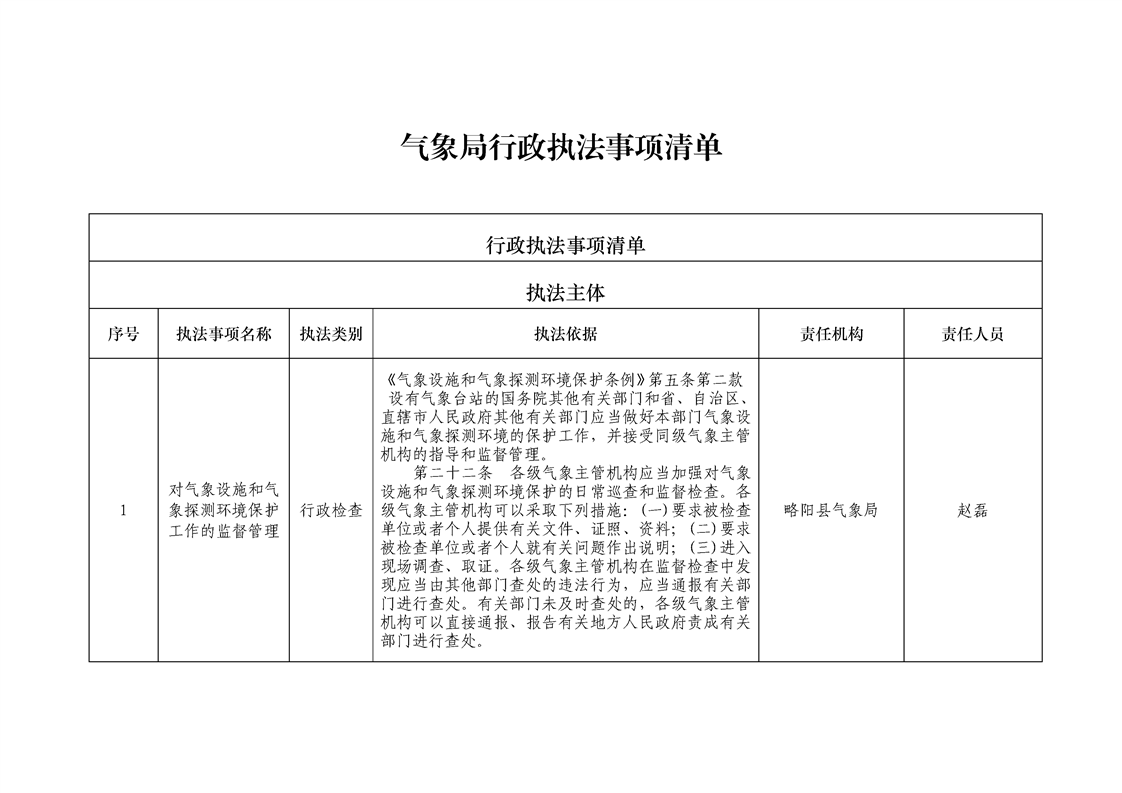 氣象局行政執(zhí)法事項清單
