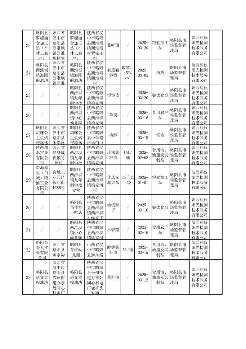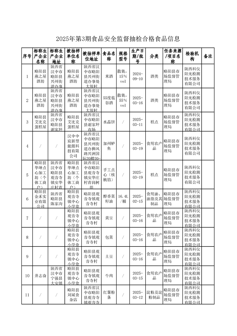 略陽縣市場監(jiān)督管理局食品監(jiān)督抽檢合格產(chǎn)品信息(2025年第3期)