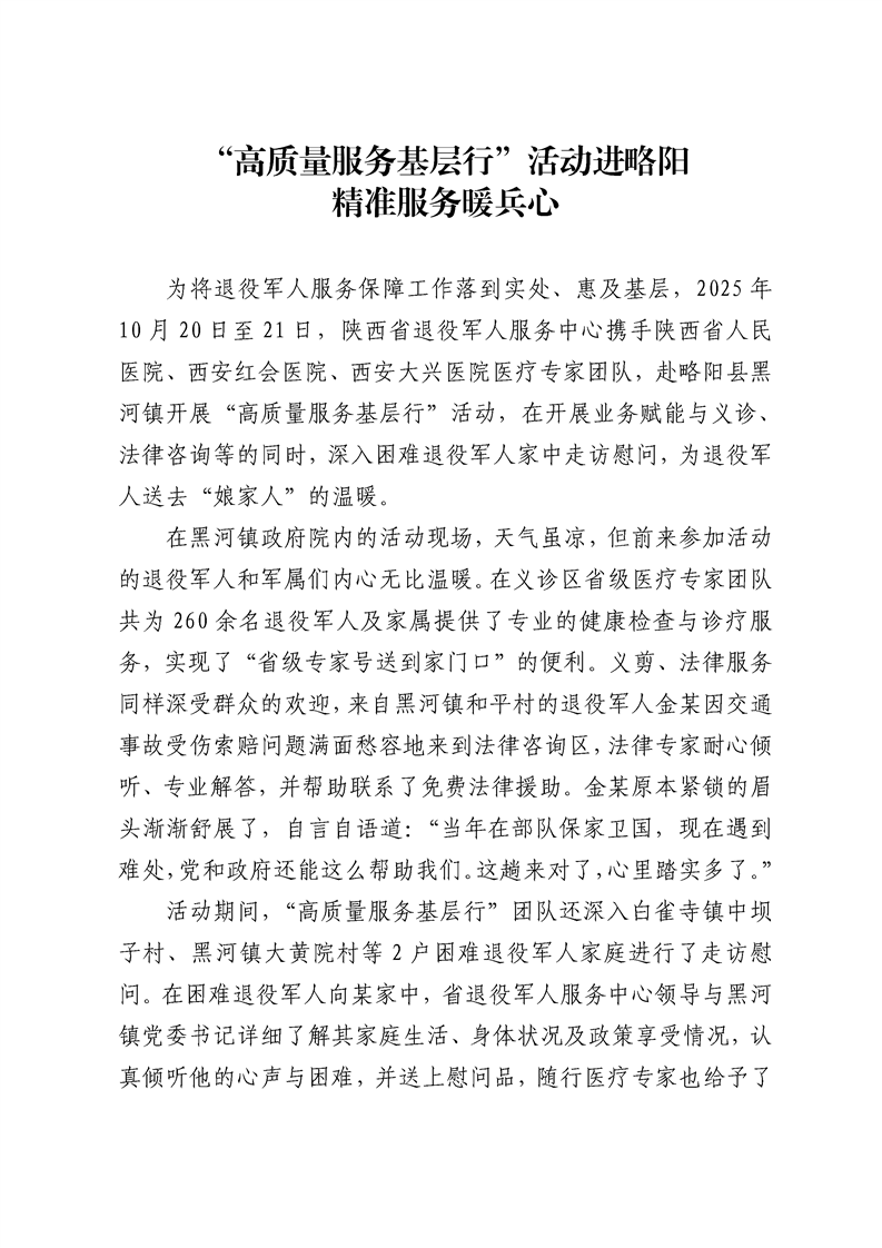 “高質量服務基層行”進略陽 精準服務暖兵心
