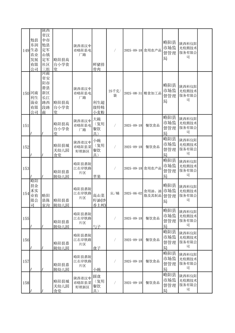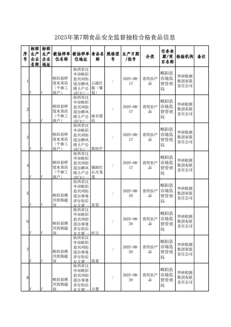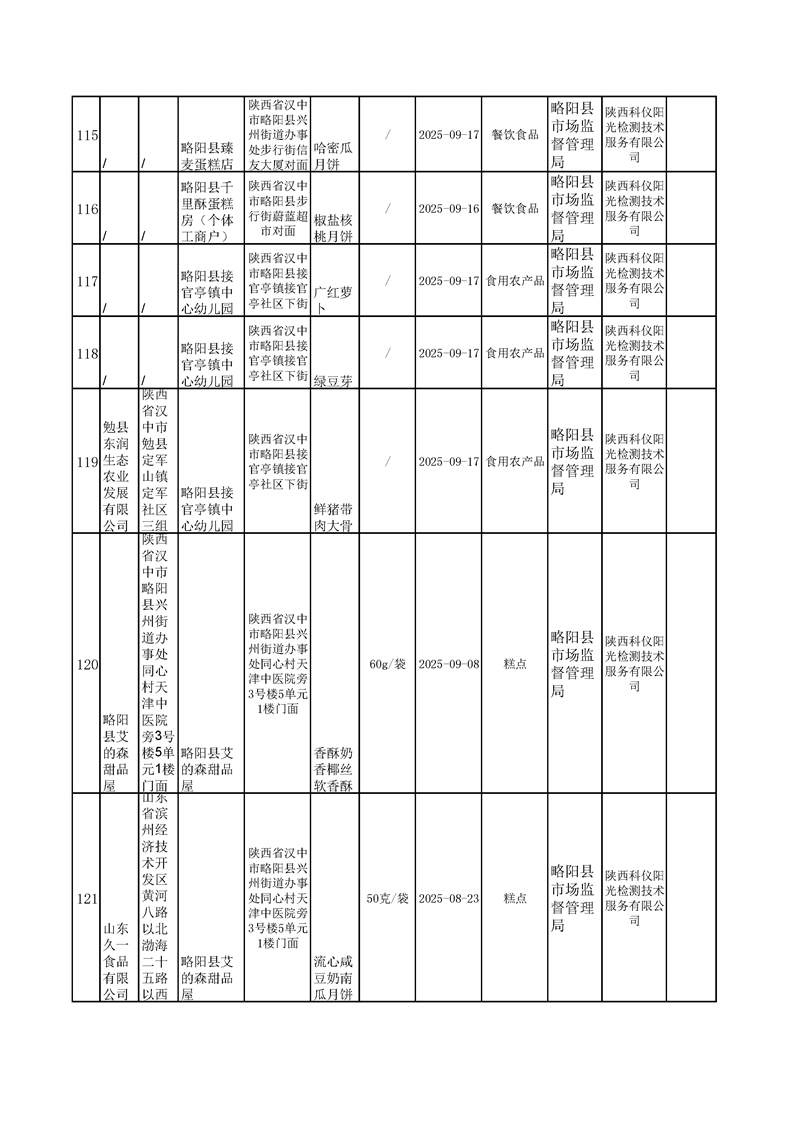 略陽縣市場監督管理局食品安全抽檢信息通告(2025年第7期)