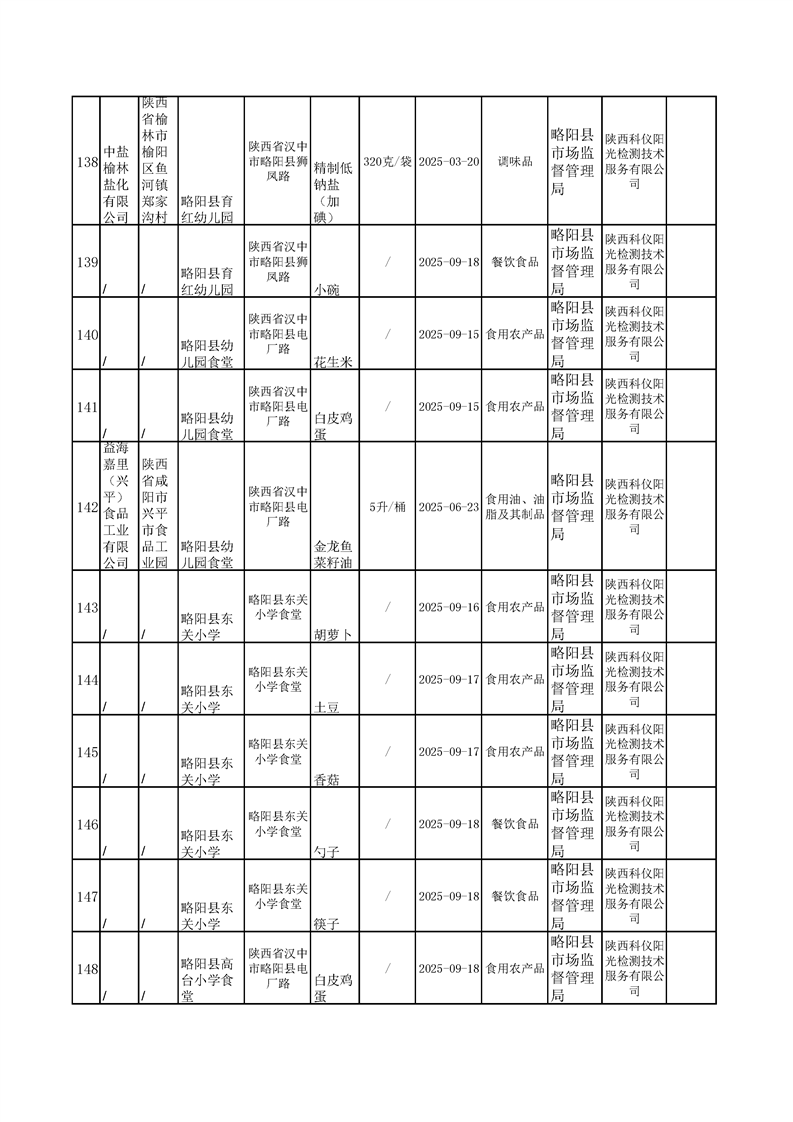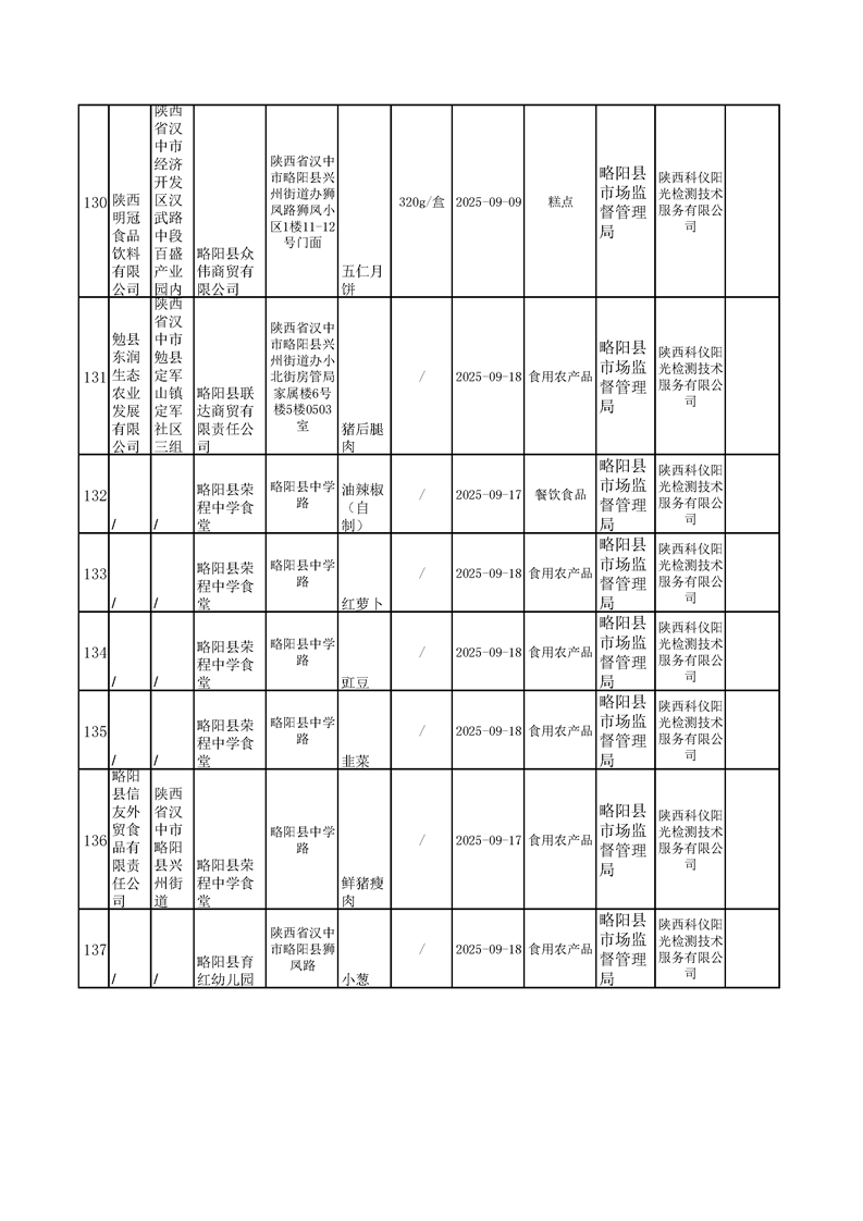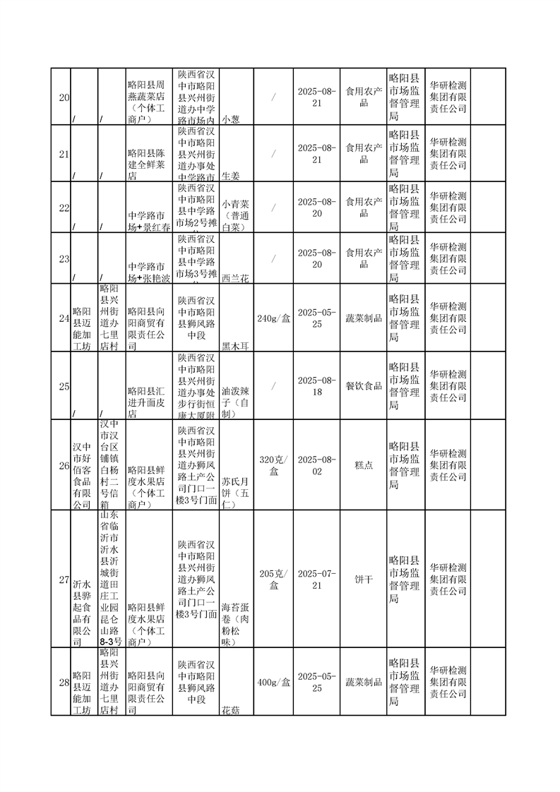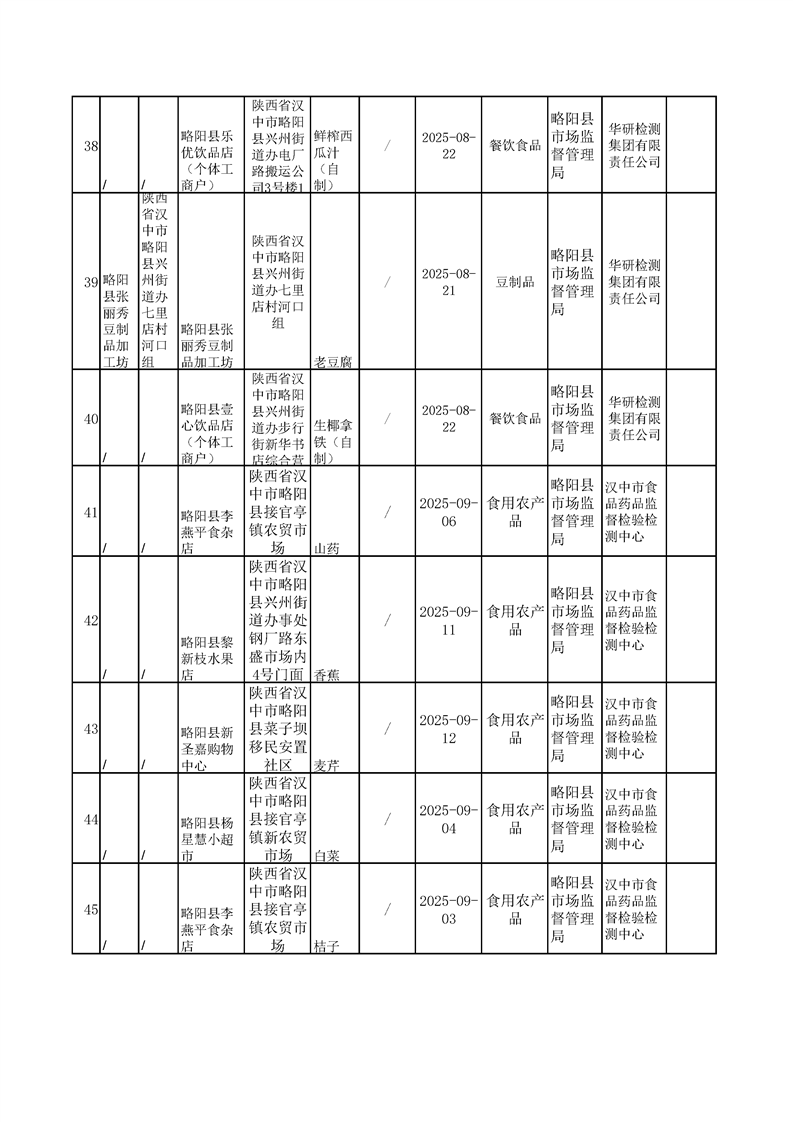 略陽縣市場監督管理局食品安全抽檢信息通告(2025年第7期)