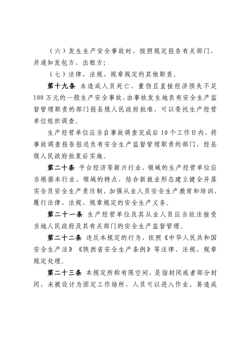 陜西省生產(chǎn)經(jīng)營單位安全生產(chǎn)主體責(zé)任規(guī)定