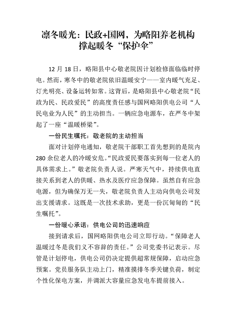 《凜冬暖光:民政+國網,為略陽養老機構撐起暖冬“保護傘”》