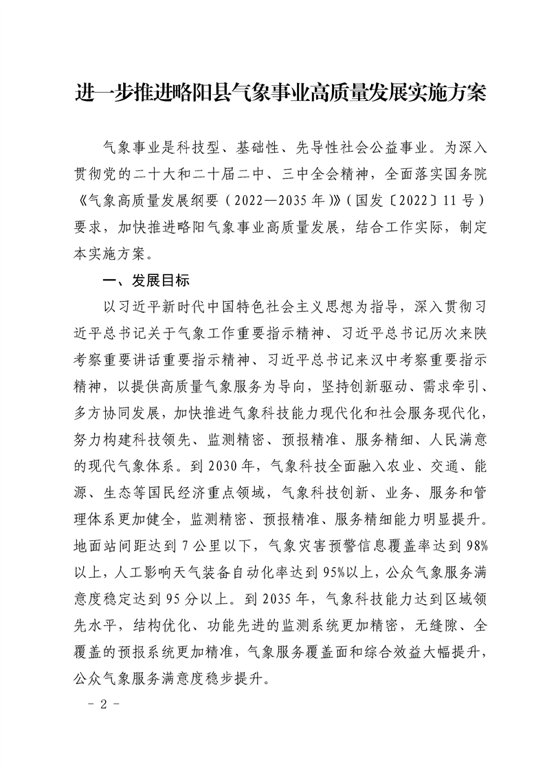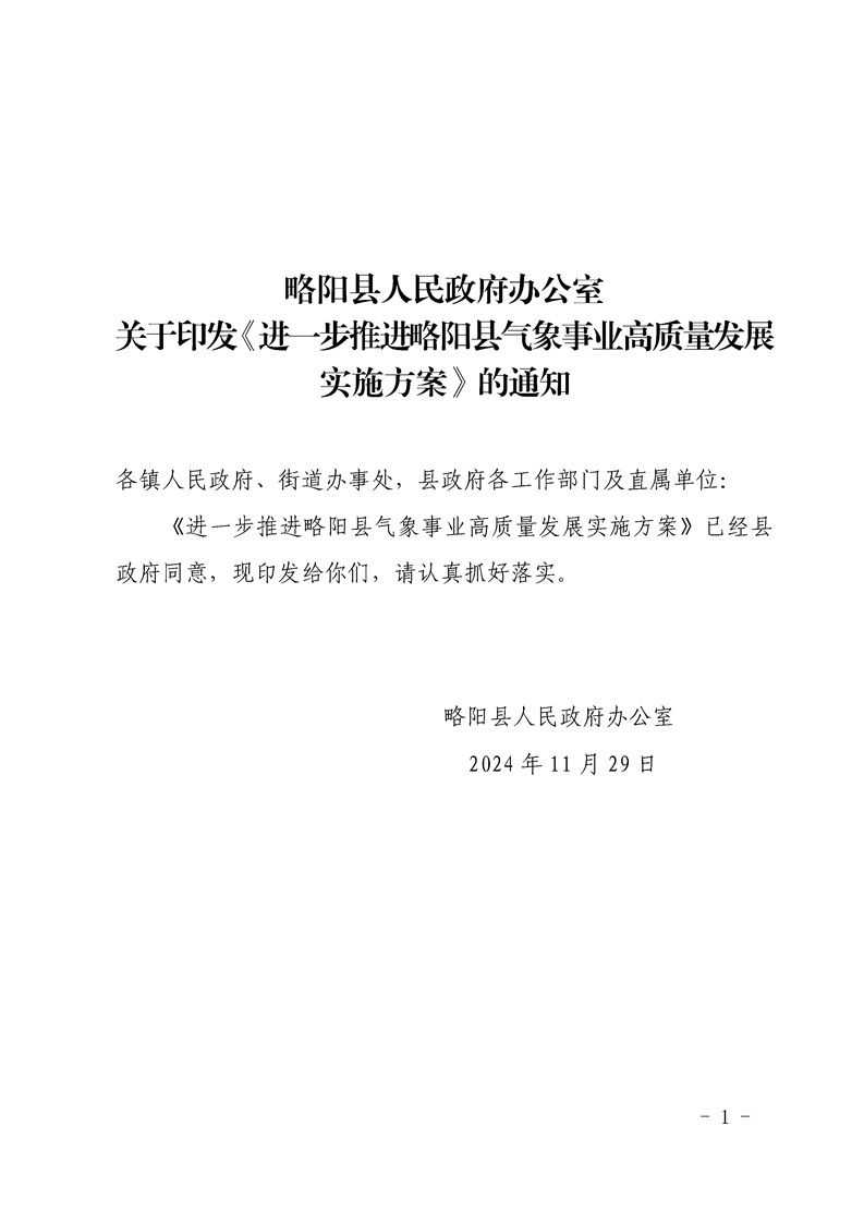 略陽縣人民政府辦公室關于印發《進一步推進略陽縣氣象事業高質量發展實施方案》的通知