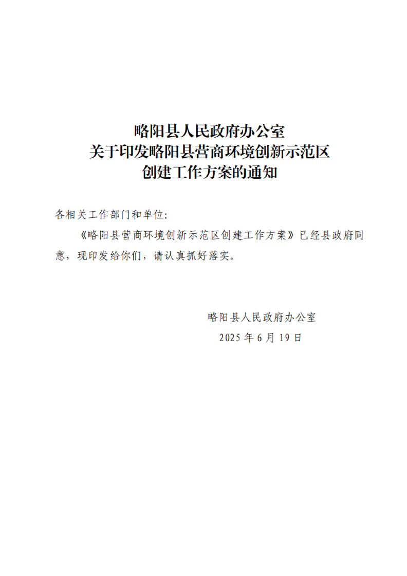 略陽縣人民政府辦公室關于印發略陽縣營商環境創新示范區創建工作方案的通知