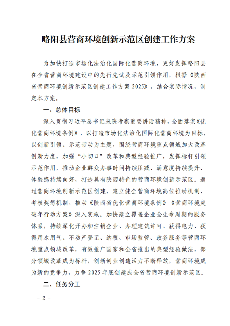 略陽縣人民政府辦公室關于印發略陽縣營商環境創新示范區創建工作方案的通知 |