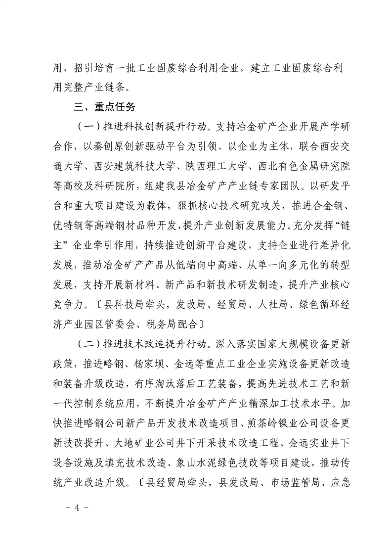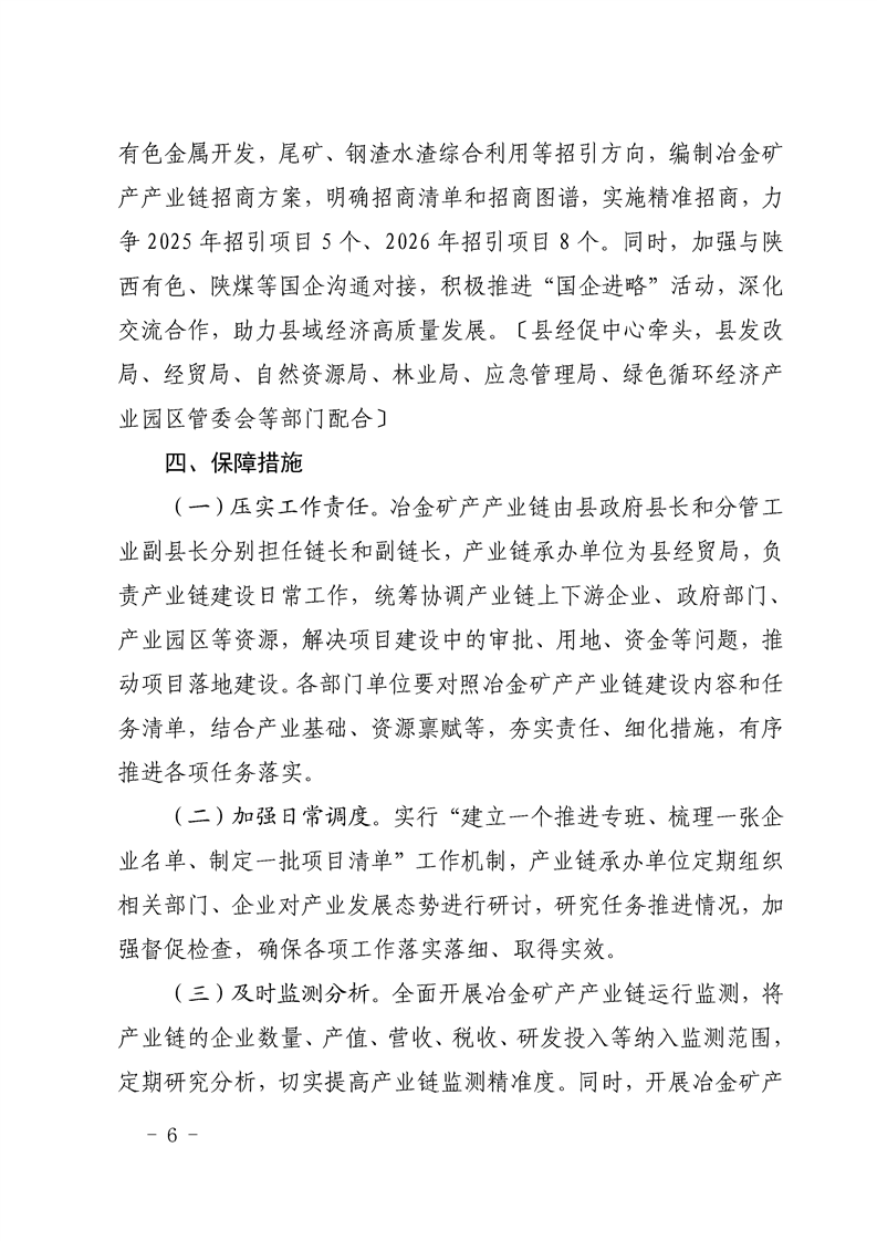 略陽縣人民政府辦公室印發(fā)《略陽縣冶金礦產(chǎn)產(chǎn)業(yè)鏈建設(shè)2025-2026年行動工作方案》的通知 |