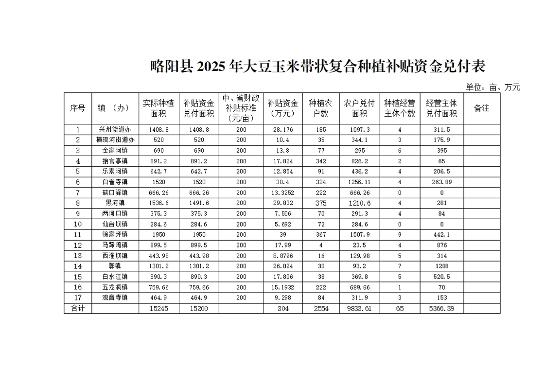 略陽縣農業農村局關于略陽縣2025年大豆玉米帶狀復合種植補貼項目資金情況的公示